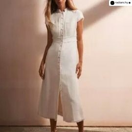 Few things say refined confidence like an all-white outfit. This button-down midi dress is sleek yet feminine, hugging the figure in just the right way while keeping it office-appropriate with its structured cut and modest length. The cap sleeves add a polished touch, making it perfect for warmer days when you still want to look professional.
