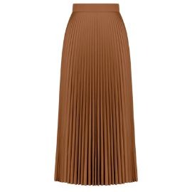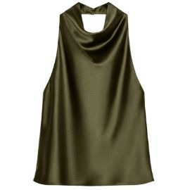 1. Olive Satin Top + Camel Pleated Skirt