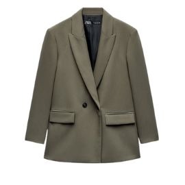 When the temperature drops, nothing beats layering. The olive blazer instantly adds structure, while the camel wide-leg trousers bring that soft contrast. Add a cozy knit top in a warm tone — something between caramel and chestnut — to make it feel approachable and chic.
