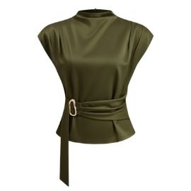 There’s something so effortlessly feminine about a pleated skirt, especially when paired with the soft shine of satin. The olive green satin top gives this outfit that subtle touch of luxury, while the camel pleated skirt adds flow and movement.