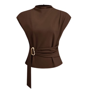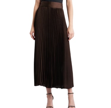 The structured belted top defines the waist with precision, while the pleated skirt brings that soft, elegant movement that gives the outfit life. It’s the kind of silhouette that flatters every body shape — structured on top, flowy at the bottom — a timeless fashion formula.