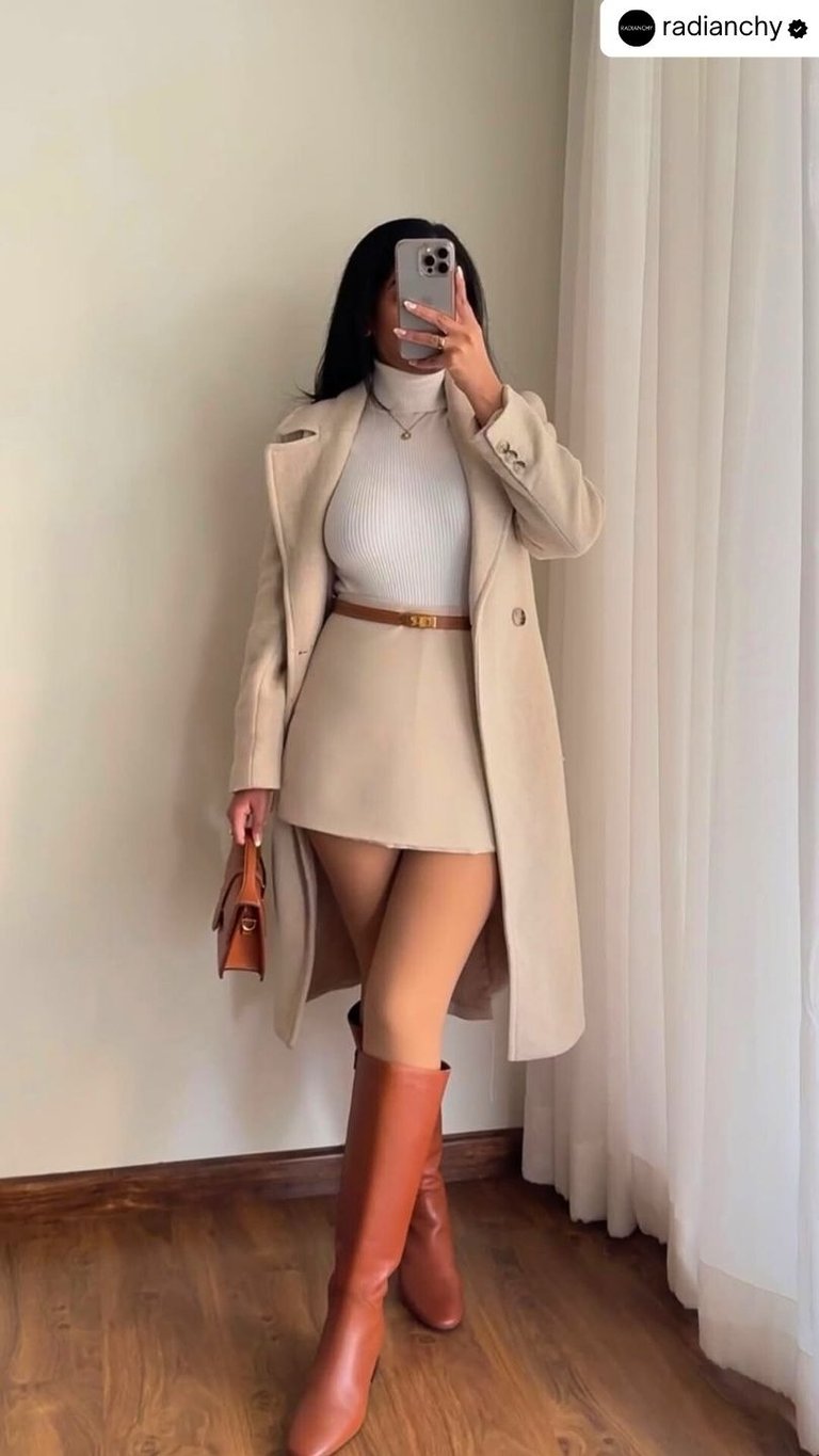 As the leaves turn golden and the air grows crisp, it’s time to embrace outfits that blend sophistication with modern flair. For American women seeking polished yet versatile looks, pairing a long beige coat with a beige mini skirt and caramel-toned accessories is the ultimate autumn ensemble. This outfit strikes the perfect balance between elegance and practicality, ideal for brunch dates, office days, or evening strolls. Below, we break down each piece—from the long beige trench coat to the caramel knee-high boots—to help you curate a head-turning look while optimizing style and comfort.