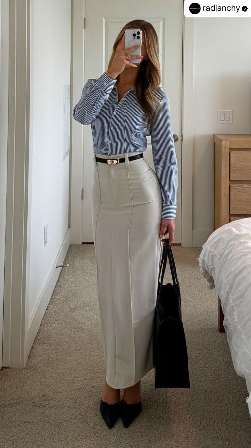 Looking for a chic way to elevate your work wardrobe? Skirts are back in a big way — and not just for Fridays or boardroom presentations. When styled right, they instantly add sophistication, elongate your silhouette, and make you look like the most put-together version of yourself. From sleek midi skirts to dramatic long lines, here’s your ultimate guide to nailing skirt workwear outfits that look high-end, feel effortless, and turn heads in the office (in the best way possible). 💼👗✨
